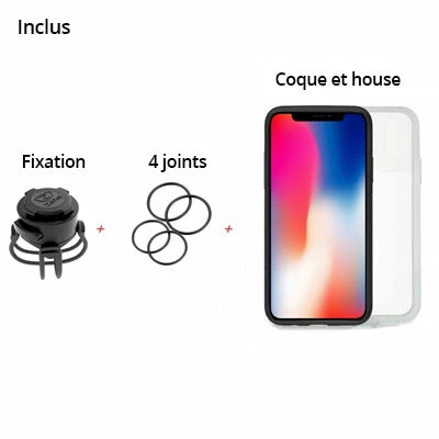 Le support smartphone Z Console de Zéfal permet aux détenteurs d’iPhone X de rester connectés à vélo. Sont livrés, la coque avec sa housse de protection transparente, le système de fixation facile rotatif 360° et 4 joints toriques. La fixation se fait sur le guidon ou la potence via les 4 colliers : deux joints de 33 mm de diamètre et 2 joints de 36 mm de diamètre.