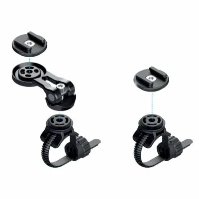 Ce support smartphone vélo SP Connect est livré avec sa fixation à mécanisme de montage intégré. Celle-ci se place facilement sur guidon ou potence de 22 à 42 mm de diamètre. De plus, un adaptateur est fourni pour les surfaces plates. Cette fixation universelle SP Connect propose deux options d’utilisation (voir photo 6) :