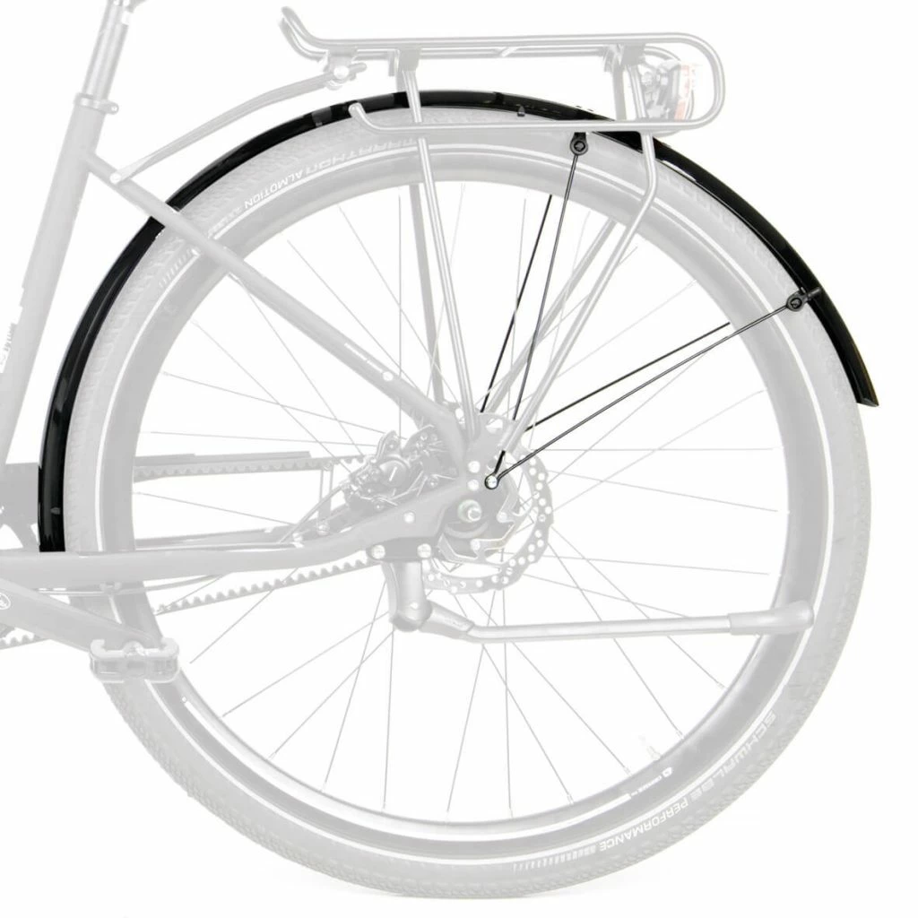 très près des pneus. Le garde-boue Blumels Basic est adapté pour les vélos de ville et de randonné et s’adapte parfaitement aussi au voyage à vélo et au déplacement en ville et en VAE grâce au large choix de taille disponible.